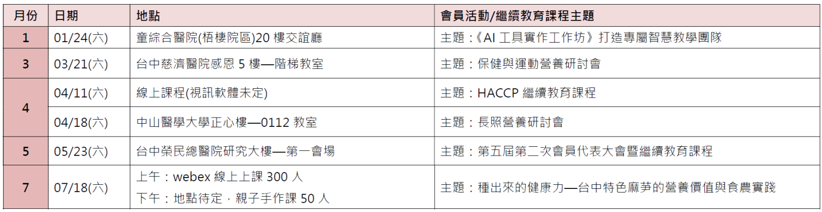 📢預告!本會115年度1~7月會員活動、繼續教育課程