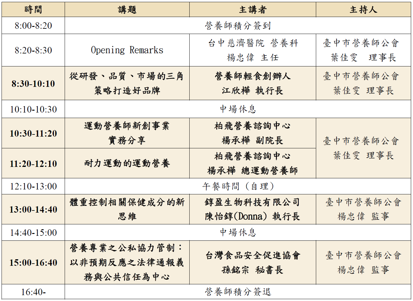 參與人員:限臺中市營養師公會會員,名額190位。
