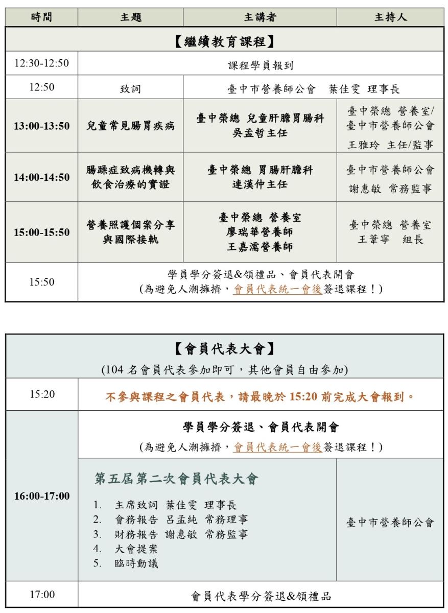 參與人員:僅限臺中市營養師公會會員參加(免費),名額450位,額滿為止。